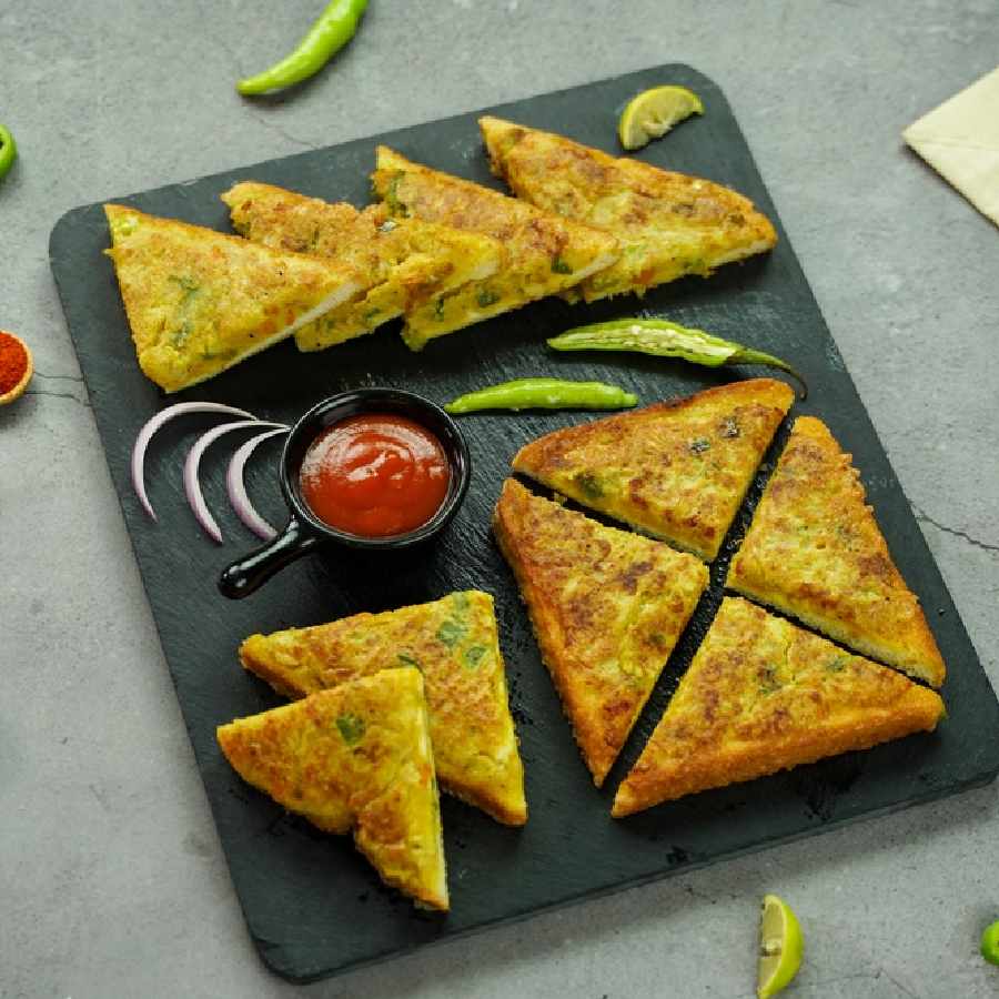 একটি বাটিতে খানিকটা বেসন নিয়ে তার সঙ্গে একে একে পেঁয়াজকুচি, ক্যাপসিকামকুচি, কাঁচালঙ্কাকুচি, ধনেপাতাকুচি, নুন, লঙ্কাগুঁড়ো আর পরিমাণ মতো জল মিশিয়ে একটি ঘন মিশ্রণ বানিয়ে নিন। এ বার একটি মাল্টিগ্রেন পাউরুটি তিনকোনা করে কেটে বেসনের মিশণে ডুবিয়ে অল্প তেলে কড়া করে ভেজে নিন। টম্যাটো সসের সঙ্গে গরম গরম বেশ লাগবে ভেজ টোস্ট।
