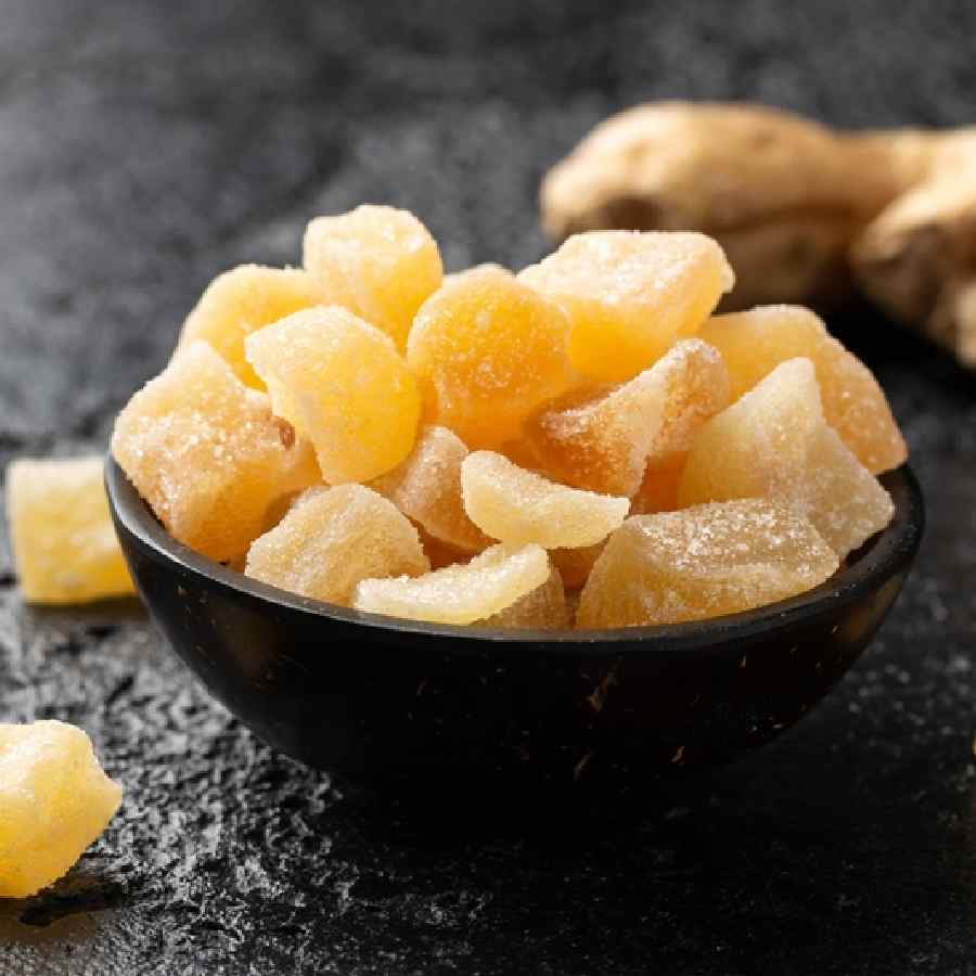 জ্বরের মুখে আদা খেলেও স্বাদ ফেরে। তা ছাড়া, সর্দিকাশির উপশমেও আদার জুড়ি মেলা ভার! বাড়িতে আদার লজেন্স বানিয়ে নিতে পারেন। একটি পাত্রে এক বাটি আদা দিয়ে খানিক ক্ষণ নাড়াচাড়া করুন। কড়াইয়ে গুড় দিয়ে ভাল করে জ্বাল দিন। গুড় পুরোপুরি গলে গেলে তাতে এক চামচ বিটনুন, এক চামচ হলুদগুঁড়ো, এক চামচ গোলমরিচের গুঁড়ো ও এক চামচ ঘি দিয়ে মিনিট পাঁচেক আরও নাড়াচাড়া করুন। এ বার একটি বাটার পেপারের উপর চামচে করে মিশ্রণটি ঢেলে গোল গোল চাকতির আকার দিন। ঠান্ডা হলেই জমে যাবে লজেন্সগুলি।