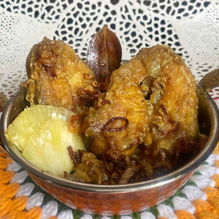 একটি সুন্দর পাত্রে মাছগুলো রেখে আনারসের টুকরো দিয়ে সাজিয়ে পরিবেশন করুন।