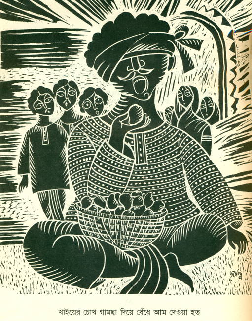 ছবিটি পূর্ণেন্দু পত্রীর আঁকা, কল্যাণী দত্তের থোর বড়ি খাড়া বইটি থেকে নেওয়া। প্রকাশক: থিমা।