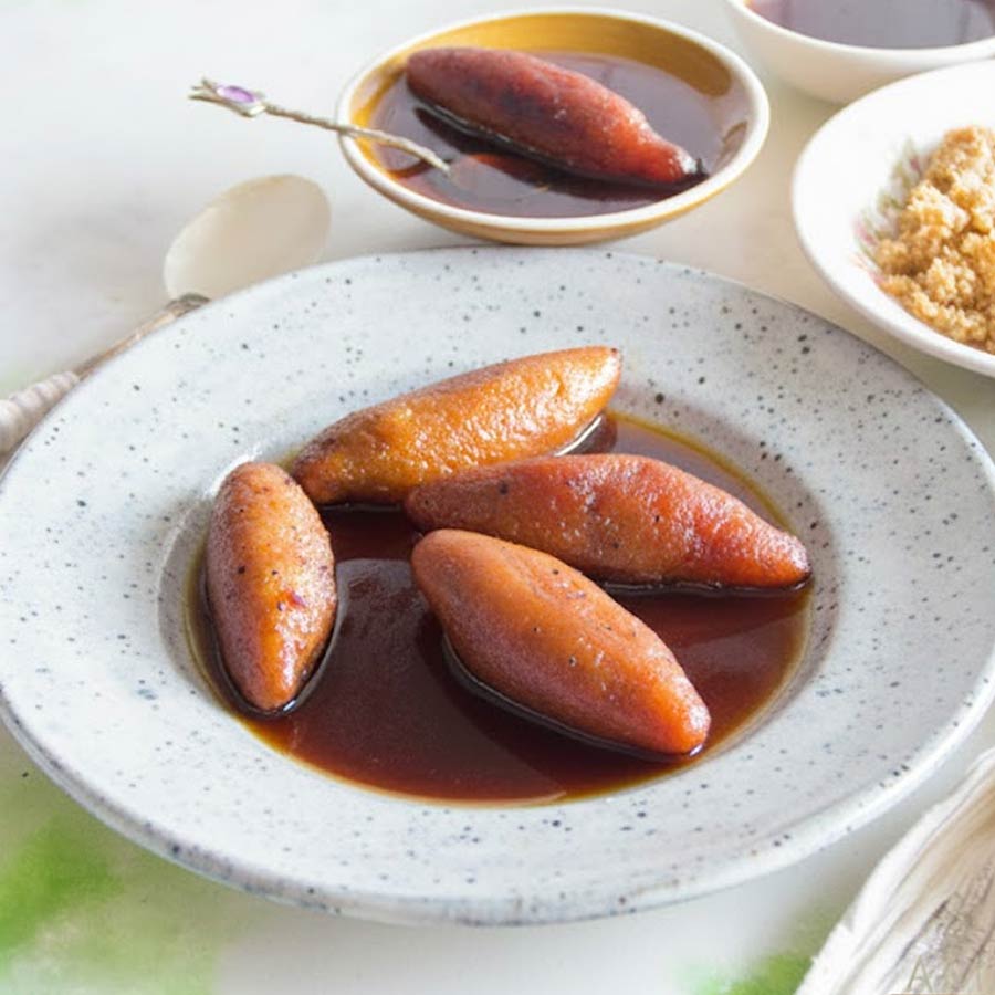চিনি আর জল ফুটিয়ে রস তৈরি করে রাখুন। রাঙা আলু সেদ্ধ করে চটকে মেখে নিন। এ বার ওই মিশ্রণটিতে আতপ চালের গুঁড়ো, এলাচ গুঁড়ো ও ক্ষীর মিশিয়ে নিন। ল্যাংচার মতো বানিয়ে বেশ কিছুক্ষণ রেখে দিন। এ বার সাদা তেলে ছেঁকে ভেজে ডোবান চিনির রসে।