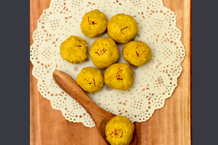 উপকরণ: বেসনের বোঁদে ১ কাপ, খোয়া ক্ষীর আধ কাপ, চিনি আধ কাপ, ঘি চার টেবিল চামচ, জাফরান সাত-আটটি, আমন্ড গুঁড়ো আধ চা চামচ, আখরোট গুঁড়ো আধ চা চামচ, কাজু বাদাম বাটা ১ চা চামচ, এলাচ গুঁড়ো ১ চা চামচ।