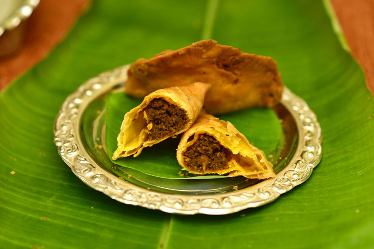 উপকরণ: মাটন কিমা ১ কাপ, আদা বাটা আধ চা চামচ, রসুন বাটা আধ চা চামচ, কাঁচা লঙ্কা বাটা ১/৪ চা চামচ, গরম মশলা গুঁড়ো আধ চা চামচ, লাল লঙ্কা গুঁড়ো ১/৪ চা চামচ, পেঁয়াজ বাটা ২ চা চামচ, হলুদ গুঁড়ো ১ চা চামচ, নুন স্বাদ মতো, ময়দা ২ কাপ, সাদা তেল ও ঘিয়ের মিশ্রণ ২ কাপ।