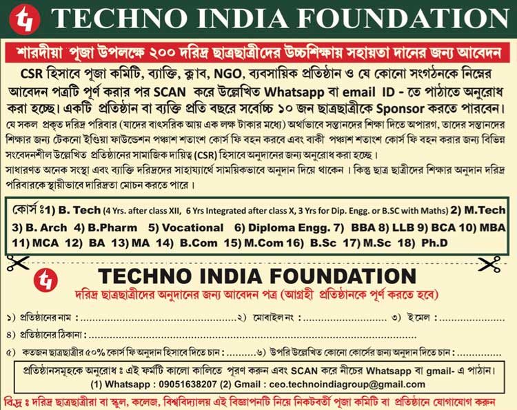 বিশেষত এই সময় দাঁড়িয়ে থিম পুজোই বহুলাংশে বাঙালির মন জয় করছে। আর তাই এই থিম পুজো কমিটিগুলি নিজেদেরকে আরও-আরও ভাল করার জন্য বারংবার বদলে ফেলছে নিজেদের ভাবনা। যেখানে শিল্পীরা তাদের মনের ভাবনা, তাদের কারিগরিত্ব ব্যক্ত করতে পারছেন। বলা বাহুল্য এই থিম পুজোগুলি শিল্পীদের কাছে তাদের শিল্পকলার বহিঃপ্রকাশের একটি প্ল্যাটফর্ম হয়ে দাঁড়িয়েছে। অনেকটা একটি প্লেটে সাজানো হরেক কিসিমের পদের মতো। এই দূর্গাপুজোই একমাত্র উপলক্ষ্য যেখানে সকল মানুষ এক ছাদের তলায় এসে মিলিত হয়। তবে এমনও অনেক বাঙালি আছেন যারা কর্মসূত্রে বা অন্যান্য কাজে দেশের বা রাজ্যের বাইরে থাকার কারণে ভীষণভাবে মিস করেন এই পুজোকে। কিন্তু এখন আর চিন্তা নেই। কারণ উৎসবের এই বিবর্তনের কথা মাথায় রেখেই টেকনো ইন্ডিয়া গ্রুপ অসাধারণ একটি সমাধান নিয়ে হাজির হয়েছে সকলের দোরগোড়ায়, থুড়ি হাতের মুঠোয় যা সত্যিই অবাক করার মতো। এখানকার ছাত্ররা পুজোর জন্য তৈরি করেছে ৩৬০ ডিগ্রি ইন্টারেক্টিভ একটি অ্যাপ - অন্য পুজো। এটি এমন একটি অ্যাপ যার মাধ্যমে আপনি বিশ্বের যে কোনও প্রান্ত থেকে পুজোর আবেগকে উপভোগ করতে পারবেন ফোনের একটা ক্লিকের মাধ্যমেই।
