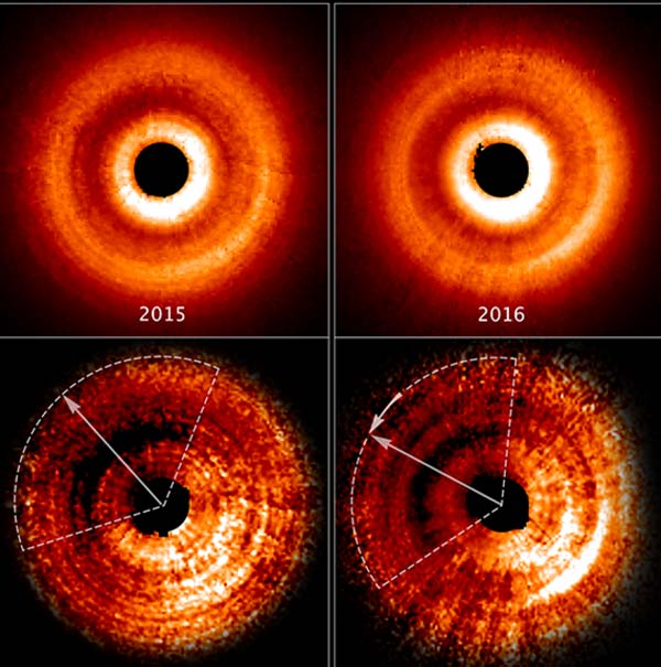 আনন্দবাজারের পাঠানো প্রশ্নের জবাবে সুনন্দ নিউইয়র্ক থেকে ই-মেলে লিখেছেন, ‘‘নতুন ভিন গ্রহটি কিন্তু সেই ঘন, লম্বা ছায়া তৈরি করছে না। যে তারাটির (TW-Hydrae) চার পাশে সেই ভিন গ্রহটি চক্কর মারছে, তার থেকে বেরিয়ে আসা গ্যাস, কণাস্রোত আর ধুলোবালিকে নিজের জোরালো অভিকর্ষ বলে কাছে টেনে আনছে গ্রহটি। আর সেই গ্যাস, কণাস্রোত আর ধুলোবালির ঘন, পুরু চাদরটাকে তার মুখের ওপরে থাকা চাকতির ভেতরের অংশে নিজের জোরালো অভিকর্ষ বলের টানেই ওই গ্রহটি জাপটে ধরে রাখছে। আর সেই চাকতিটিই তৈরি করছে ওই ঘন, লম্বা ছায়া। যা চাকতিটির বাইরের দিকেও ছড়িয়ে পড়ছে। গত ১৮ বছর ধরে আমরা সেই ছায়াটির ওপর নজর রেখে গিয়েছি। ২০০৫ সালেই প্রথম হাব্ল স্পেস টেলিস্কোপের নজরে পড়ে যায় ওই সুবিশাল ছায়ার উজ্জ্বলতার বাড়া-কমা, তার বিভিন্ন দিকে। হাব্ল টেলিস্কোপের এটাও চোখে পড়ে, সেই বিশাল ছায়াটা সরে সরে যাচ্ছে। এখান থেকে ওখানে। ঘড়ির কাঁটা যে দিকে ঘোরে, তার উল্টো দিকে। তা কেন হচ্ছে, সেটা তখন বোঝা যায়নি। ছায়ার একটি বিন্দু ১৬ বছর আগে, ২০০০ সালে যেখানে ছিল, গত বছর সেই বিন্দুটিকেই ফিরে আসতে দেখা যায়। তার মানে ঘড়ির কাঁটার উল্টো দিকে ছায়াটি ঘুরছে, প্রতি ১৬ বছরে এক বার করে।