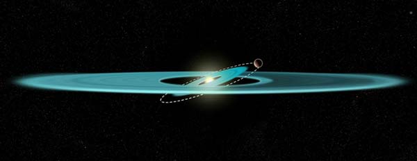 পর্দার আড়ালটা আদতে তার ঘন, লম্বা একটা ছায়া। যে ছায়া দিয়ে ঢেকে রাখা আছে তার কায়া! সেই ঘন আর লম্বা ছায়াই ছেয়ে রয়েছে তার মুখ ঘিরে থাকা গ্যাস আর ধুলোবালির চাকতিতে। প্রায় ৪ হাজার ১০০ কোটি মাইল চওড়া ওই চাকতি বা ‘প্রোটোপ্ল্যানেটারি ডিস্ক’টি ওই সৌরমণ্ডলের নক্ষত্রটি থেকে রয়েছে প্রায় ৯ কোটি ৩০ লক্ষ মাইল দূরে।