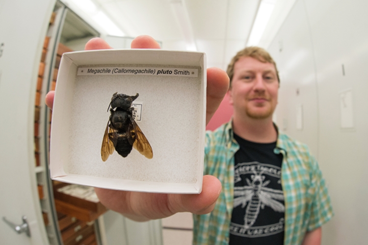 এলি ওয়াইম্যানের হাতে দৈত্যাকার মৌমাছির নমুনা। ছবি ক্লে বোল্টের টুইটার হ্যান্ডেল থেকে সংগৃহীত।