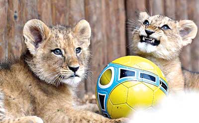 খেলায় মত্ত ১৪ সপ্তাহের দুই সিংহ শাবক।