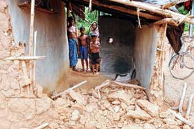 মাঝরাতে দাঁতাল ঝুকে ভেঙেছে ঘর। বিষ্ণুপুরের কলাবাগান গ্রামে।—নিজস্ব চিত্র