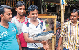পাখি হাতে আলম। —নিজস্ব চিত্র।