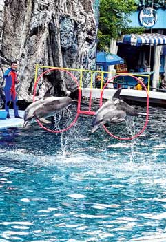 ডলফিনের খেলা। ব্যাঙ্ককের সাফারি ওয়ার্ল্ডে। ছবি: প্রীতিকা দত্ত