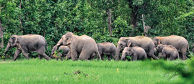 বাঁকুড়ায় ঢুকে পড়া প্রায় দেড়শো হাতির এই দলটি সোনামুখীর বিভিন্ন গ্রামে ছড়িয়ে পড়ে উত্‌পাত চালাচ্ছে। বৃহস্পতিবার দুপুরে সোনামুখীর মানিকবাজার পঞ্চায়েত এলাকার মাঝডোবা গ্রামের একটি পুকুরে নেমে পড়ে প্রায় ২৫টি হাতি।