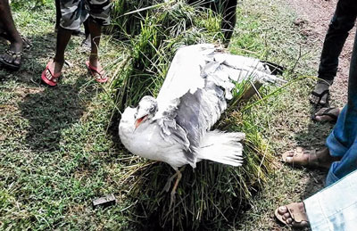 সোমবার সকালে দাঁতনের আঙ্গুয়া থেকে এই পরিযায়ী পাখিকে নিয়ে