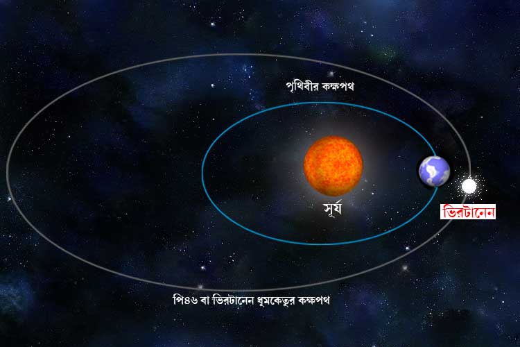 সব ধূমকেতুর মতোই ‘৪৬পি/ ভিরটানেন সূর্যকে কেন্দ্র করে নিজের কক্ষপথে ঘুরে চলেছে। সূর্যের এক বার ঘুরতে তার সময় লাগে মোটামুটি সাড়ে ৫ বছর। সূর্যকে প্রদক্ষিণ করতে করতেই ধূমকেতুটি এখন এসে পড়েছে পৃথিবীর এত কাছাকাছি। যার জেরে তাকে অনেক বেশি উজ্জ্বল দেখাবে। এই শতাব্দীতে আর কখনও পৃথিবীর এত কাছে আসবে না ধূমকেতুটি।