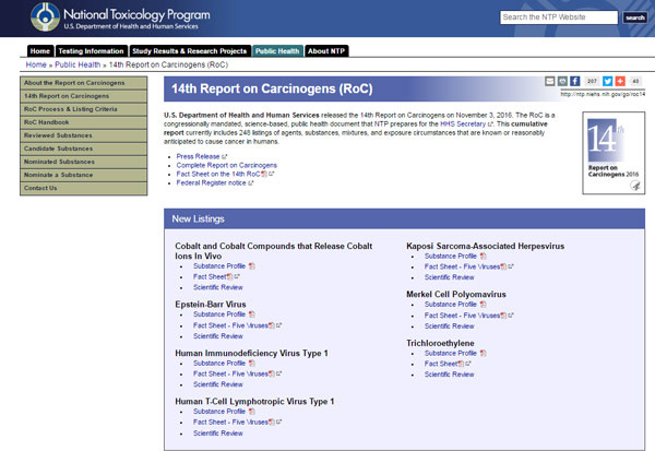 সবিস্তার রিপোর্ট মিলবে এই ঠিকানায়: http://ntp.niehs.nih.gov/go/roc14.