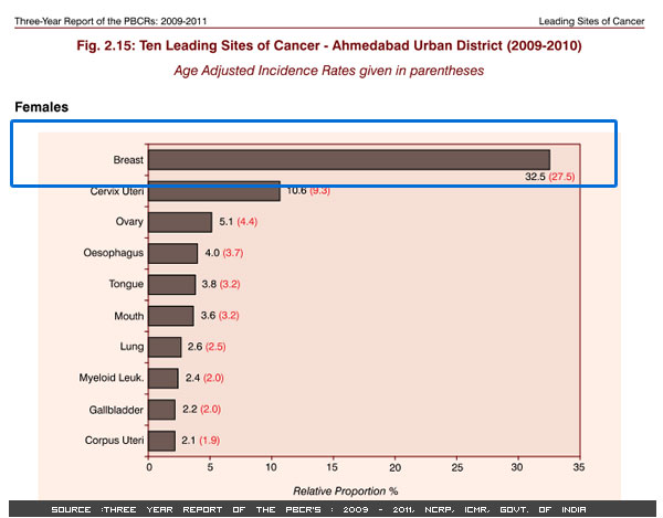দিল্লির ম্যাক্স সুপার স্পেশ্যালিটি হসপিটালের অঙ্কোলজি সার্ভিসের অধিকর্তা ডা. রঙ্গা রাও রঙ্গরাজু বলছেন, ‘‘ভারতে প্রতি বছর সাড়ে ১২ লক্ষ মানুষ আক্রান্ত হচ্ছেন ক্যান্সারে। তার মধ্যে ক্যান্সারে আক্রান্ত হচ্ছেন ৭ লক্ষেরও বেশি মহিলা। তাঁদের মধ্যে ফি-বছর ভারতে অন্তত সাড়ে ৩ লক্ষ মহিলা মারা যাচ্ছেন ক্যান্সারে। যে সংখ্যাটা আর ৯ বছর পর গিয়ে পৌঁছবে সাড়ে ৪ থেকে ৫ লক্ষে।