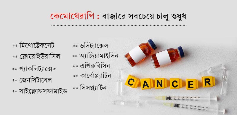 কেমোথেরাপিতে এখন বাজারে চালু ওষুধ/ ইঞ্জেকশনগুলি কী কী?