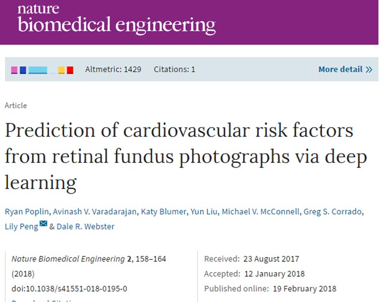 গবেষণাপত্রটি প্রকাশিত হয়েছে আন্তর্জাতিক বিজ্ঞান-জার্নাল ‘নেচার-বায়োমেডিক্যাল ইঞ্জিনিয়ারিং’-এ। গবেষণাপত্রটির শিরোনাম- ‘প্রেডিকশান অফ কার্ডিওভাসকুলার রিস্ক ফ্যাক্টর্স ফ্রম রেটিনাল ফান্ডাস ফোটোগ্রাফস ভায়া ডিপ লার্নিং’।