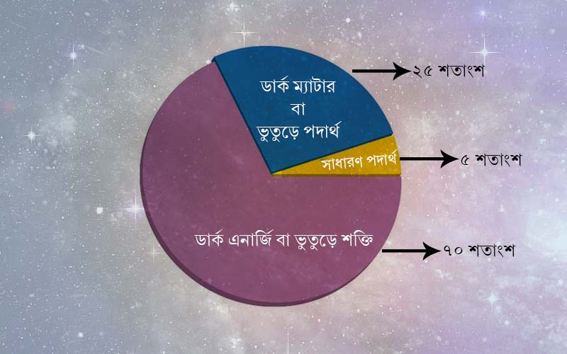 ব্রহ্মাণ্ডের মোট ভরের (১০০ শতাংশ) কতটা ডার্ক এনার্জি, কতটা ডার্ক ম্যাটার আর কতটা সাধারণ পদার্থ