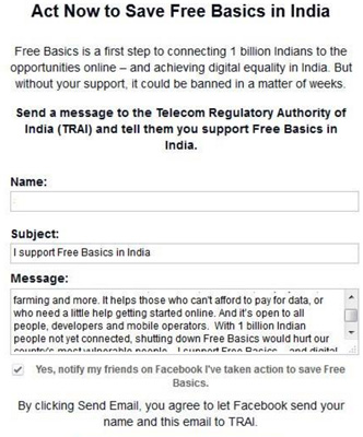 বেশ চুপিসারে কিন্তু এ দেশে নিজেদের ইন্টারনেট ডট অর্গ সার্ভিস চালু করে দিল ফেসবুক। তবে একটু নতুন কায়দায়। শুক্রবার সকাল থেকেই ফেসবুকে লগ ইন করলে নয়া এক অ্যাপ চোখে পড়ছে। ফেসবুকের তরফে অনুরোধ করা হচ্ছে তাদের ‘ফ্রি বেসিক’ সার্ভিসের জন্য টেলিকম অথরিটি অফ ইন্ডিয়ার (ট্রাই)-এর কাছে করা পিটিশনে যেন সই করেন ইউজাররা। সই করলে নিজে থেকেই ই মেল চলে যাবে ট্রাই এর দফতরে।