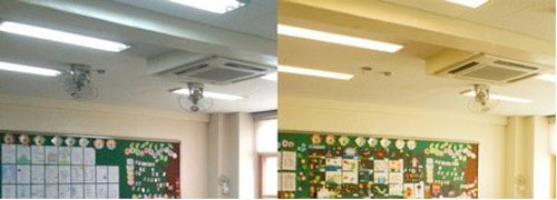 ফ্লুরোসেন্ট আলো (বাঁ দিকে) এবং এলইডি আলো (ডান দিকে)