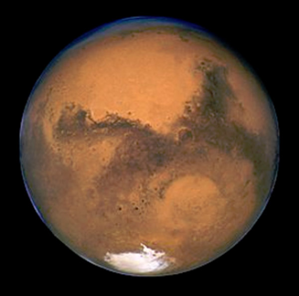 মঙ্গলের যে এলাকায় রয়েছে বরফের পাহাড় (দক্ষিণ মেরুতে সাদা দাগ)
