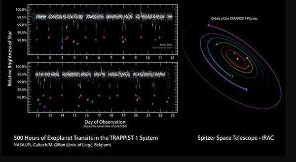দেবেন্দ্রের কথায়, ‘‘প্রথম খুঁতটা ধরা পড়ে ‘ট্রাপিস্ট-১বি’ গ্রহটির অরবিটাল পিরিয়ডের হিসেবে। গিলন ও তাঁর সহযোগীরা ‘ভিএলটি’, ‘ট্রাপিস্ট’ আর হাওয়াই দ্বীপপুঞ্জে বসানো ‘ইউকে ইনফ্রারেড টেলিস্কোপ’ দিয়ে পর্যবেক্ষণের পর বলেছিলেন, ওই ভিনগ্রহটির (ট্রাপিস্ট-১বি) অরবিটাল পিরিয়ড হবে ৩.০২ পার্থিব দিন। কিন্তু আমরা পর্যবেক্ষণের পর নিশ্চিত হই যে, ওই ভিনগ্রহটির অরবিটাল পিরিয়ড আদৌ ৩.০২ পার্থিব দিন নয়। আদতে সেটা ১.৫১ পার্থিব দিন। আন্তর্জাতিক বিজ্ঞান-জার্নাল ‘নেচার’-এ গিলান ও তাঁর সহযোগী গবেষকদরে সঙ্গে আমার গবেষণাপত্রটি প্রকাশিত হয় ২০১৬-র মে মাসে। আমরা ওই ট্রাপিস্ট-১ নক্ষত্র থেকে তিনটি গ্রহের সঠিক দূরত্বও বলতে পেরেছিলাম। পরে এই ফেব্রুয়ারিতেই নাসার স্পিৎজার স্পেস টেলিস্কোপ ওই সৌরমণ্ডলে পৃথিবীর আকারের আরও ৪টি গ্রহের হদিশ পায়। ‘ট্রাপিস্ট-১ই’, ‘ট্রাপিস্ট-১এফ’, ‘ট্রাপিস্ট-১জি’ এবং ‘ট্রাপিস্ট-১এইচ’। আমাদের অনুমান, একেবারে দূরে থাকা ‘ট্রাপিস্ট-১এইচ’ গ্রহটি হয়তো বরফে ভরা কোনও গ্রহ হতে পারে। আর ‘ট্রাপিস্ট-১এফ’-এর বায়ুমণ্ডল হতে পারে অনেকটা আমাদের বৃহস্পতির মতো, গ্যাসে ভরা। তবে বাকি গ্রহগুলি পাথুরে আর জলে ভরা বলেই প্রাথমিক ভাবে আমাদের মনে হয়েছে।’’
