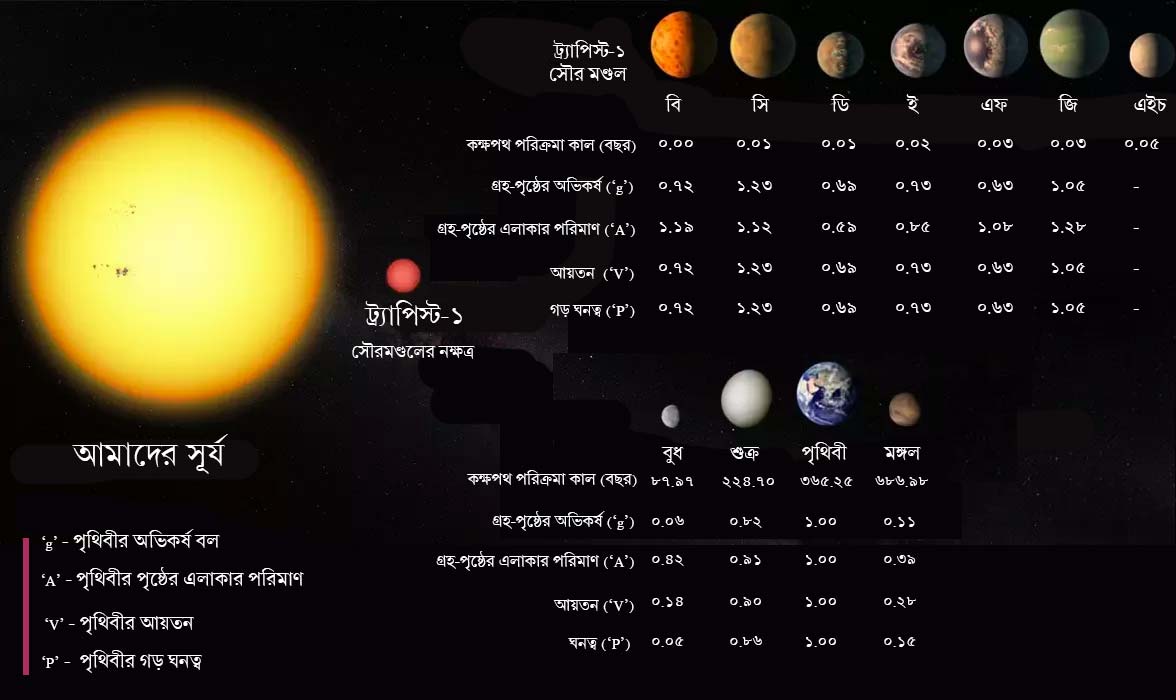 আমাদের সৌরমণ্ডলের নিরিখে ‘ট্রাপিস্ট-১’ সৌর-সংসার