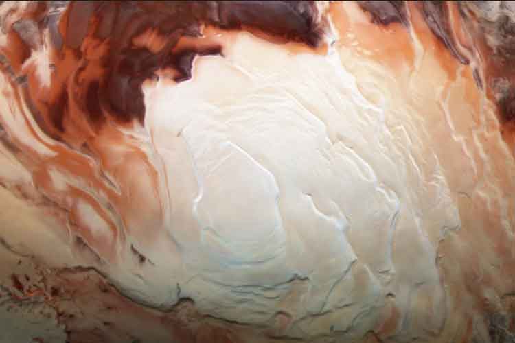 পুরু বরফে ঢাকা মঙ্গলের দক্ষিণ মেরু