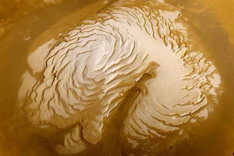 পুরু বরফের চাদর মঙ্গলের দক্ষিণ মেরুতে