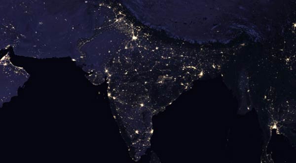মহাকাশ থেকে দেখা রাতের ভারত। ২০১২ সালে।