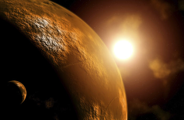 মাঝখানে মঙ্গল। বাঁ দিকে তার চাঁদ ‘ফোবস’