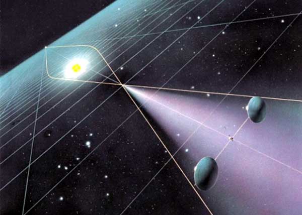 ঘটনা হল, এই অভিনব টেলিস্কোপ বানাতে আবার আইনস্টাইনের কাছেই ফিরে যেত হচ্ছে নাসাকে! আজ থেকে ১০০ বছর আগে সাধারণ আপেক্ষিকতাবাদে আইনস্টাইন বলেছিলেন, ব্রহ্মাণ্ডের এ প্রান্ত থেকে ও প্রান্তে ছুটে বেড়ানো আলোর ‘রুট’টাকে বাঁকিয়ে-চুরিয়ে দিতে পারে যে কোনও মহাজাগতিক বস্তুর অভিকর্ষ ক্ষেত্র। যত ভারী হবে সেই মহাজাগতিক বস্তু, তত বেশি করে তা বাঁকিয়ে-চুরিয়ে দেবে ব্রহ্মাণ্ডে ছুটে বেড়ানো আলোকে। আর সেই কাজটা করার জন্য সূর্যের চেয়ে বড় ‘প্লেয়ার’ আর কেই-বা আছে আমাদের হাতের কাছে!