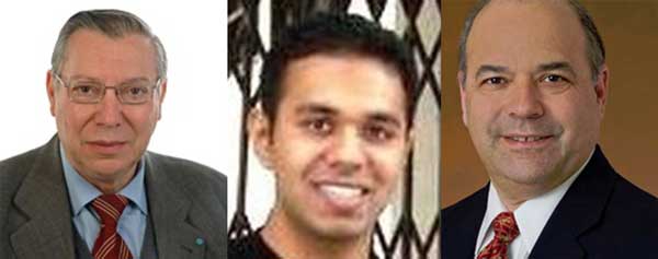 (বাঁ দিক থেকে) ইতালীয় জ্যোতির্বিজ্ঞানী ক্লদিও ম্যাকোনে, নাসার ভারতীয় গবেষক নিতিন অরোরা ও জ্যোতির্বিজ্ঞানী লিওন অ্যালকালাই