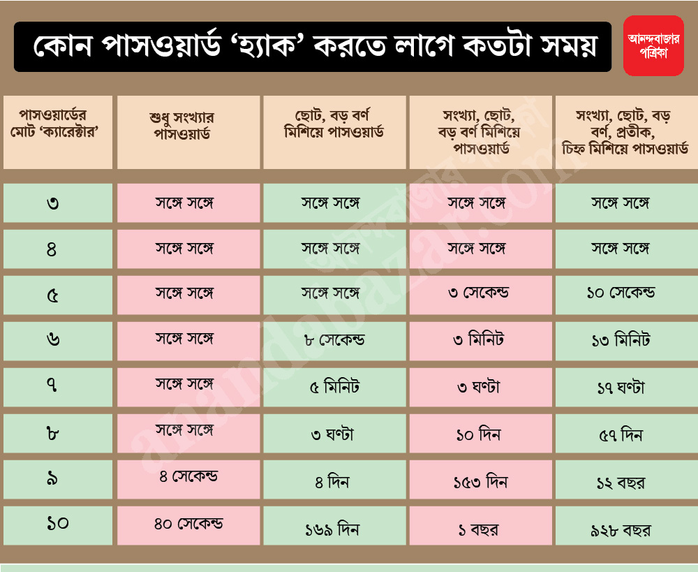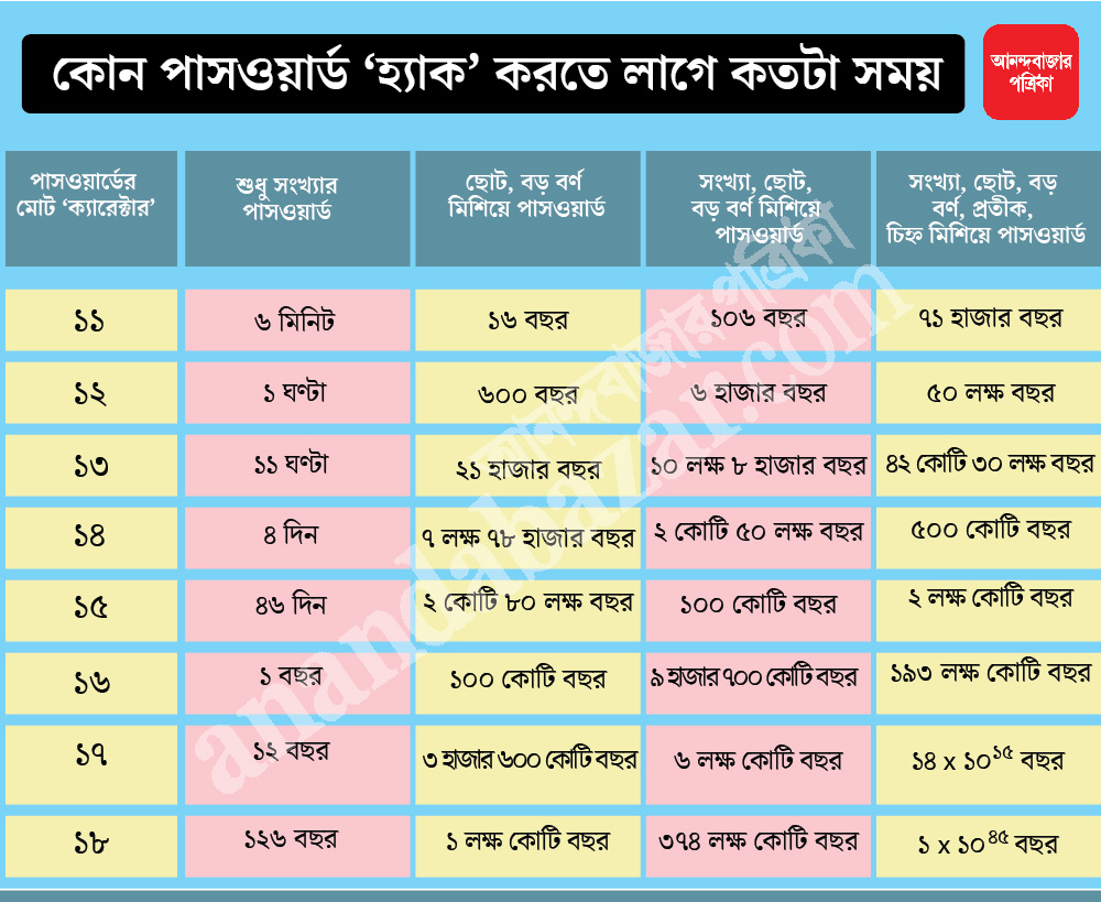 সংখ্যা, বর্ণ, প্রতীকের পাসওয়ার্ড বেশি নিরাপদ