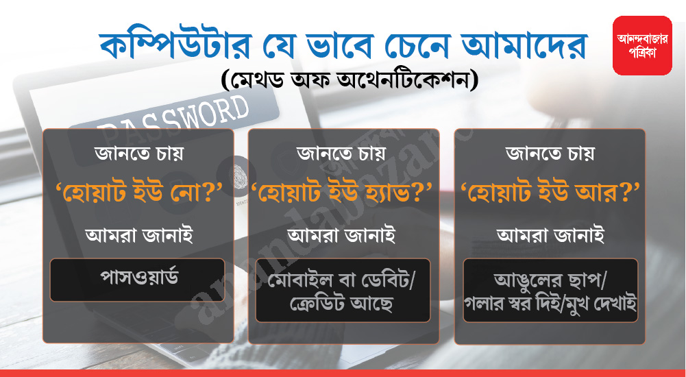 চন্দন জানাচ্ছেন, কম্পিউটার প্রথমে আমাদের কাছে জানতে চায়, ‘হোয়াট ইউ নো?’ আমাদের তো একটা জিনিসই জানা থাকে। পাসওয়ার্ড। সেটাই জানাই আমরা কম্পিউটারকে।