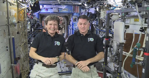 গত শুক্রবার রাতে যাঁর সঙ্গে মহাকাশে হাঁটলেন পেগি (বাঁ দিকে), সেই শেন কিমব্রাও