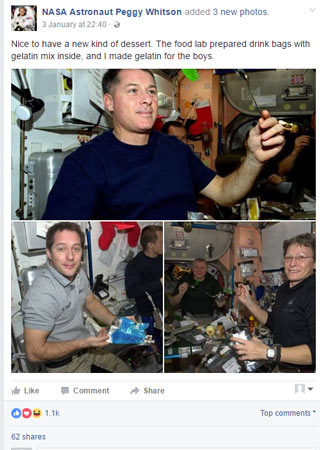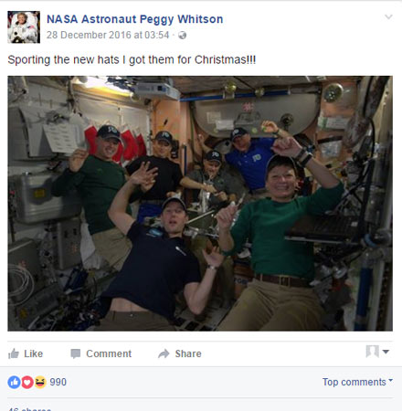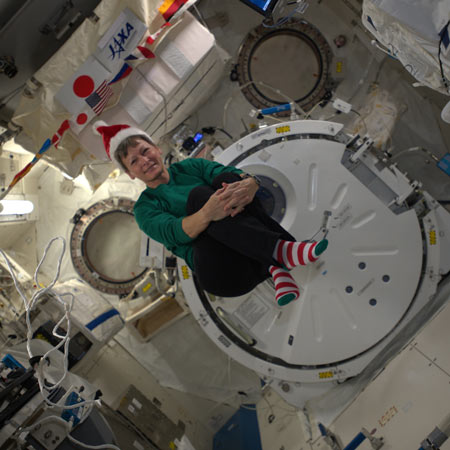 আন্তর্জাতিক মহাকাশ স্টেশনে পেগির ক্রিসমাস পালনের ছবি।