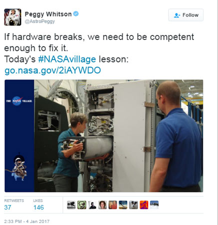 কে বলবে ৫৬! ৪ জানুয়ারি মহাকাশ স্টেশনে হার্ডওয়্যার সারাচ্ছেন পেগি...