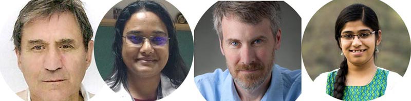 (বাঁ দিক থেকে) প্রোটিন গবেষক রবার্ট বাইওয়াটার, স্বাগতা ঘোষ, জোনাথন মিডলটন ও পৃথা ঘোষ