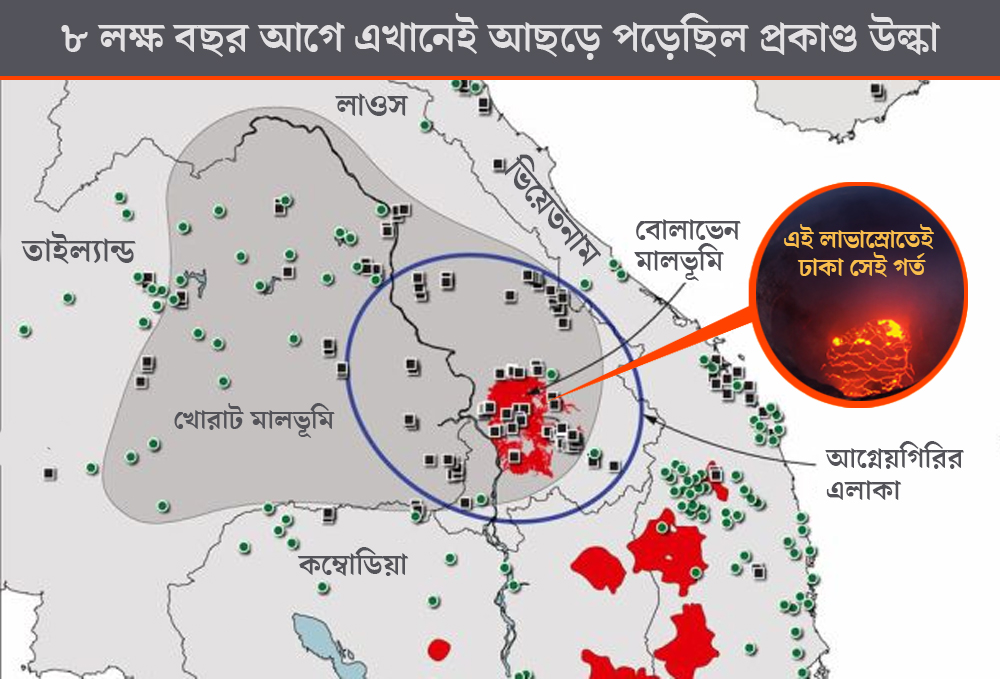গবেষকরা জানিয়েছেন, লাওসের বোলাভেন মালভূমিতেই আছড়ে পড়েছিল সেই উল্কা। ৫১ হাজার বছর থেকে ৭ লক্ষ ৯০ হাজার বছরের মধ্যে যে এলাকার উপর দিয়ে বয়ে গিয়েছে আগ্নেয়গিরির লাভাস্রোত।