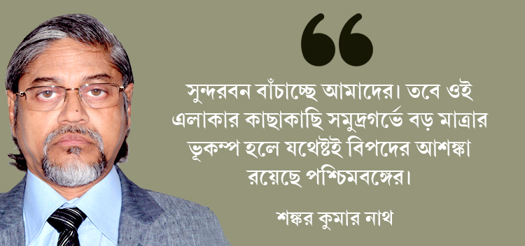 শঙ্কর কুমার নাথ: যথেষ্টই। ১৯৬৪ সালে সুন্দরবনের কাছে বঙ্গোপসাগরের উপকূল থেকে সাড়ে তিনশো কিলোমিটার দূরে সমুদ্রগর্ভে ৫.৪ মাত্রার একটি ভূকম্প হয়েছিল। তার চেয়ে একটু বেশি মাত্রার ভূকম্প হলে বা সেই ভূকম্প উপকূলের আরও কাছাকাছি হলে, হতেই পারে সুনামি। আর তাতে প্লাবিত হয়ে যেতেই পারে গাঙ্গেয় পশ্চিমবঙ্গ।
