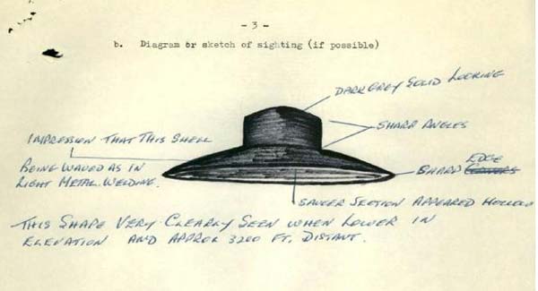 সিআইএ’র নথি থেকে: ‘উড়ন্ত চাকি’টা দেখতে কেমন? ছবি এঁকে বুঝিয়েছেন প্রত্যক্ষদর্শী