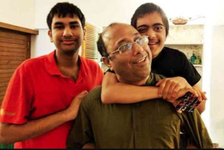 বাবা শুভায়ু বন্দ্যোপাধ্যায় ও ভাই আরিয়ানের সঙ্গে অগ্নিজ (বাঁ দিকে), দুর্গাপুরে মামার বাড়িতে