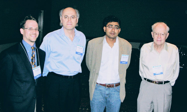 ইউজিন পার্কারের (একেবারে ডান দিকে) পাশে লেখক দিব্যেন্দু নন্দী। ফ্লোরিডায়, ‘পার্কার লেকচার’ অনুষ্ঠানে। ২০০৮ সালে।