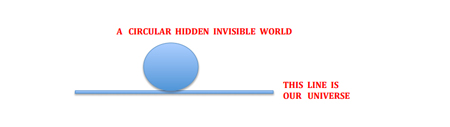 ব্রহ্মাণ্ড (নীল সরলরেখা) আর তার লুকনো তল (গোলাকার)