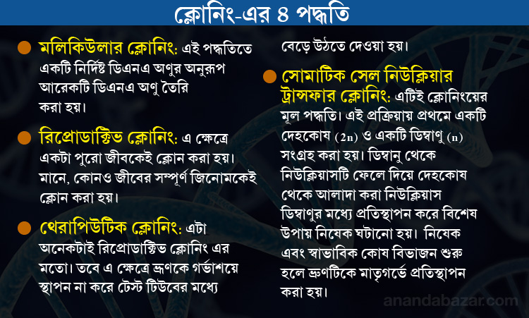 এনসিবিএস-এর সিনিয়র রিসার্চ সায়েন্টিস্ট স্বাগতা ঘোষ বলছেন, ‘‘ম্যাকাকা বাঁদর এবং মানুষের মধ্যে জিনগত সাদৃশ্য রয়েছে। তাই এই পদ্ধতিতে অনেক বেশি ক্লোন (ক্লোন মডেল) তৈরি করে তাদের উপর পরীক্ষানিরীক্ষা করা অনেক সহজ হবে।’’