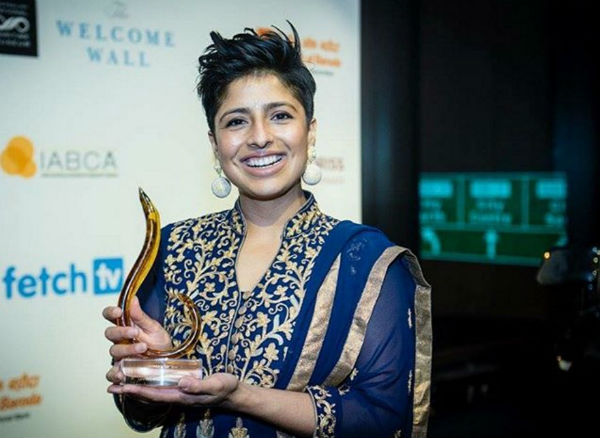 পুরস্কার হাতে উপমা ভিদ্দি। ছবি: সংগৃহীত।