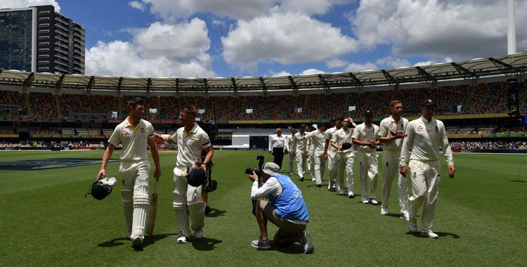 অ্যাসেজের প্রথম ম্যাচেই মুখ থুবড়ে পড়ল ইংল্যান্ড। দিনের খেলা যখন শেষ হল তখন অস্ট্রেলিয়ার নামের পাশে লেখা হয়ে গিয়েছে ১০ উইকেটে জয়। শেষ দিন এক ঘণ্টার ব্যাটেই জয় ছিনিয়ে নিল অজিরা। ব্রিসবেনে টস জিতে প্রথমে ব্যাট করার সিদ্ধান্ত নিয়েছিল ইংল্যান্ড। কিন্তু অস্ট্রেলিয়ার সামনে বড় রানের লক্ষ্যমাত্রা রাখতে পারেননি ব্রিটিশরা। প্রথমে ব্যাট করে ৩০২ রানেই গুটিয়ে যায় কুক, রুটদের ব্যাটিং। জেমস ভিনসের ৮৩ রানই ইংল্যান্ডের হয়ে ব্যাক্তিগত সর্বোচ্চ। দাবিদ মালানের ৫৬ ও মার্ক স্টোনম্যানের ৫৩ ছাড়া উল্লেখযোগ্য রান আর কিছু নেই। অস্ট্রেলিয়ার হয়ে তিনটি করে উইকেট নিলেন মিচেল স্টার্ক ও প্যাট কামিন্স। জোড়া উইকেট নাথান লিঁয়।