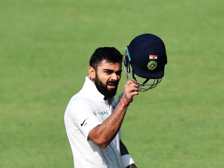 সেঞ্চুরির পরে বিরাট কোহালি। ছবি: এএফপি।